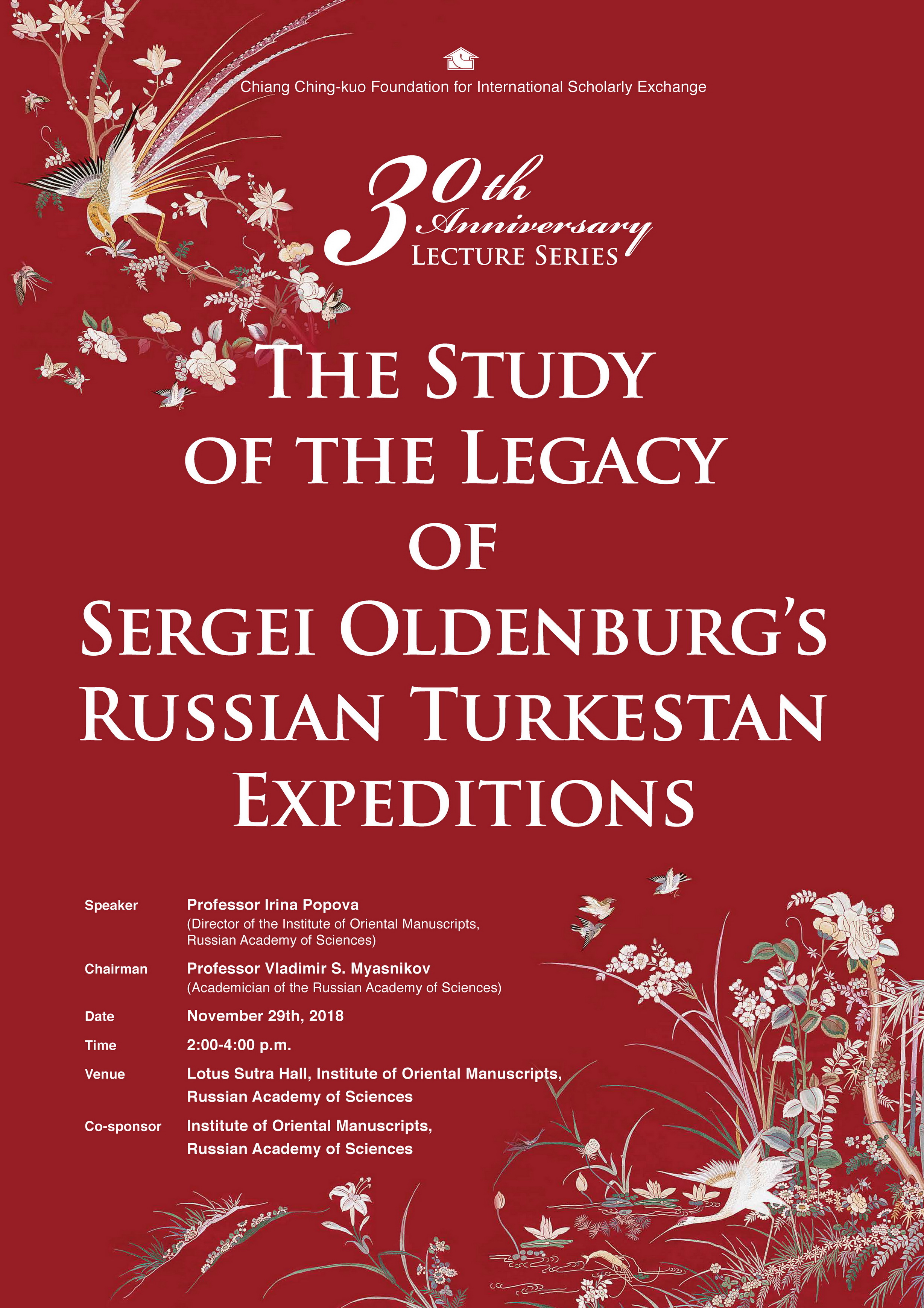 20181129基金會成立三十周年系列講座:歐洲地區(俄羅斯科學院)海報